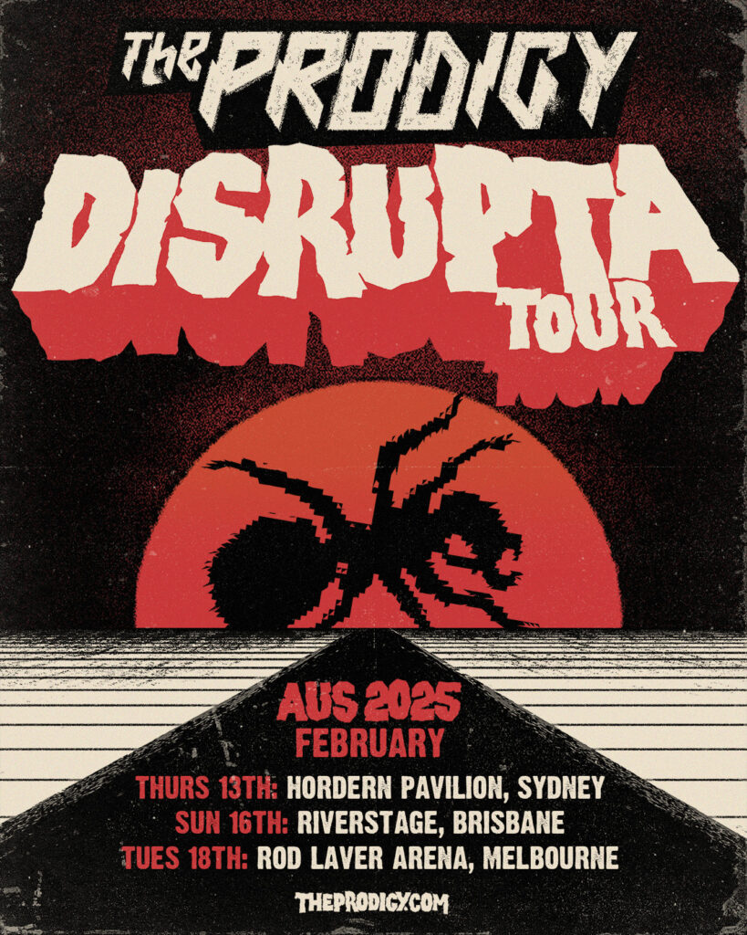 The Prodigy han confirmado hoy la que será su primera gira del próximo año, el “Disrupta Tour”. Esta serie de conciertos los llevará a recorrer varias ciudades de Australia a partir de febrero de 2025, incluyendo Sydney, Brisbane y Melbourne, marcando su regreso a suelo australiano después de 5 años.